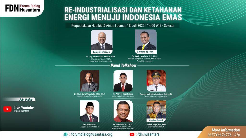 Dengan melihat konteks tersebut, maka diperlukan forum diskusi dan kajian strategis yang mampu mengintegrasikan dua agenda besar ini: Reindustrialisasi dan Ketahanan Energi, sebagai landasan untuk mencapai Indonesia Emas 2045.